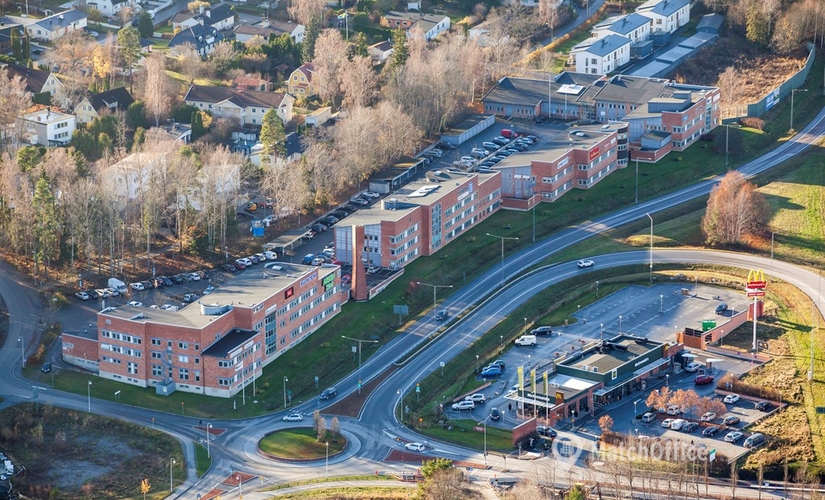 Lokal på entréplanet med 5 kontorsrum och en lagerdel, diretaccess till gårdsplan. Skyltläge mot E18.